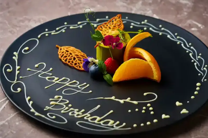 フレンチレストランでは、メッセージ付きプレートやホールケーキの手配など、誕生日や結婚記念日といった大切な日を演出するサポートも用意されています。