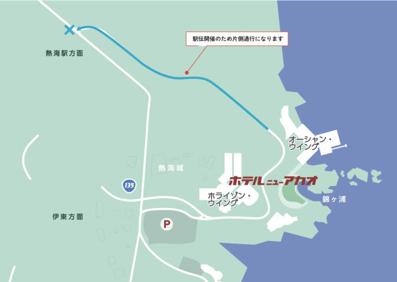 「第22回熱海市民駅伝競走大会」の開催に伴い、下記日程におきましてホテル周辺道路の車両通行止めの交通規制が実施されます